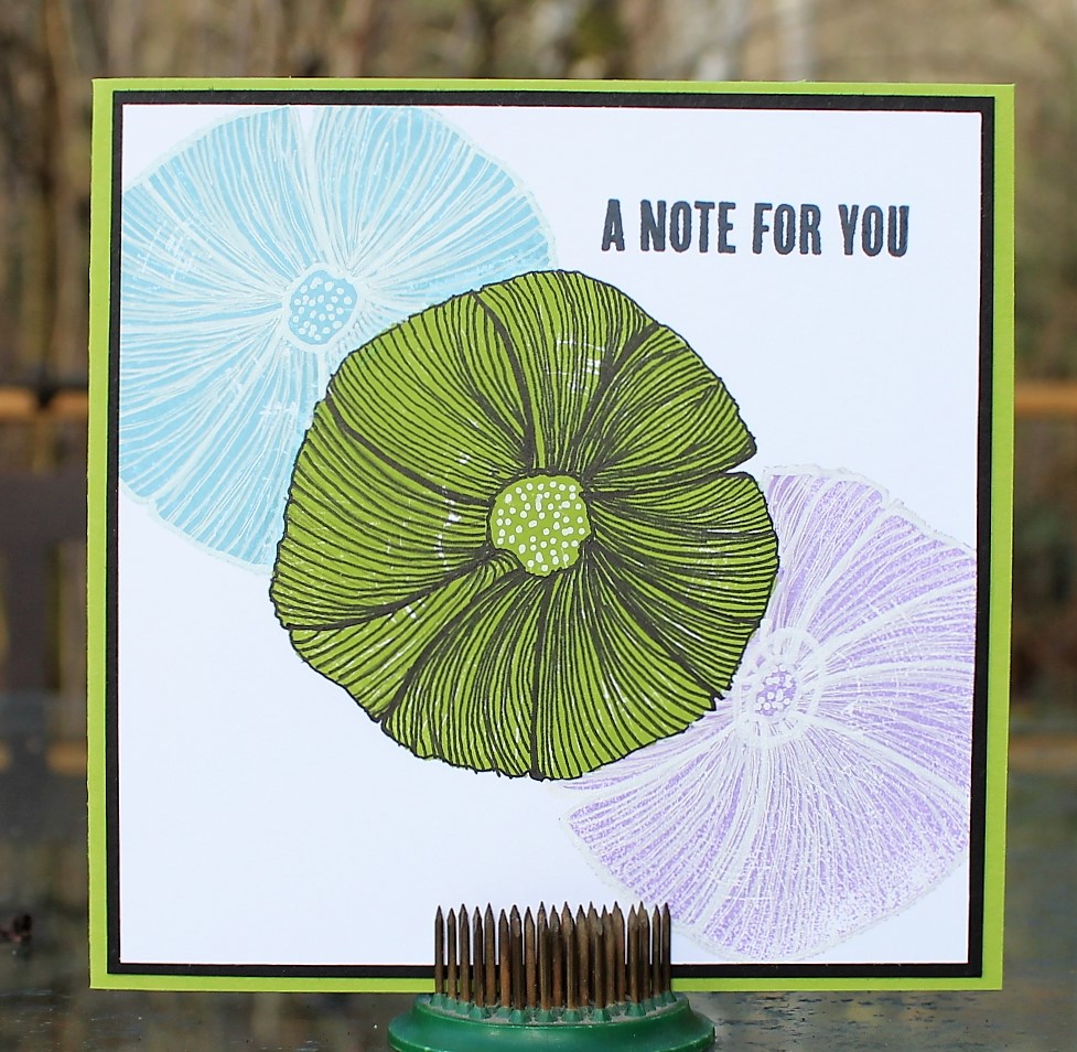 A thin border of Basic Black cardstock is perfect to set it off on the Granny Apple Green card base. And, just like that, I have a note card to send off to someone.