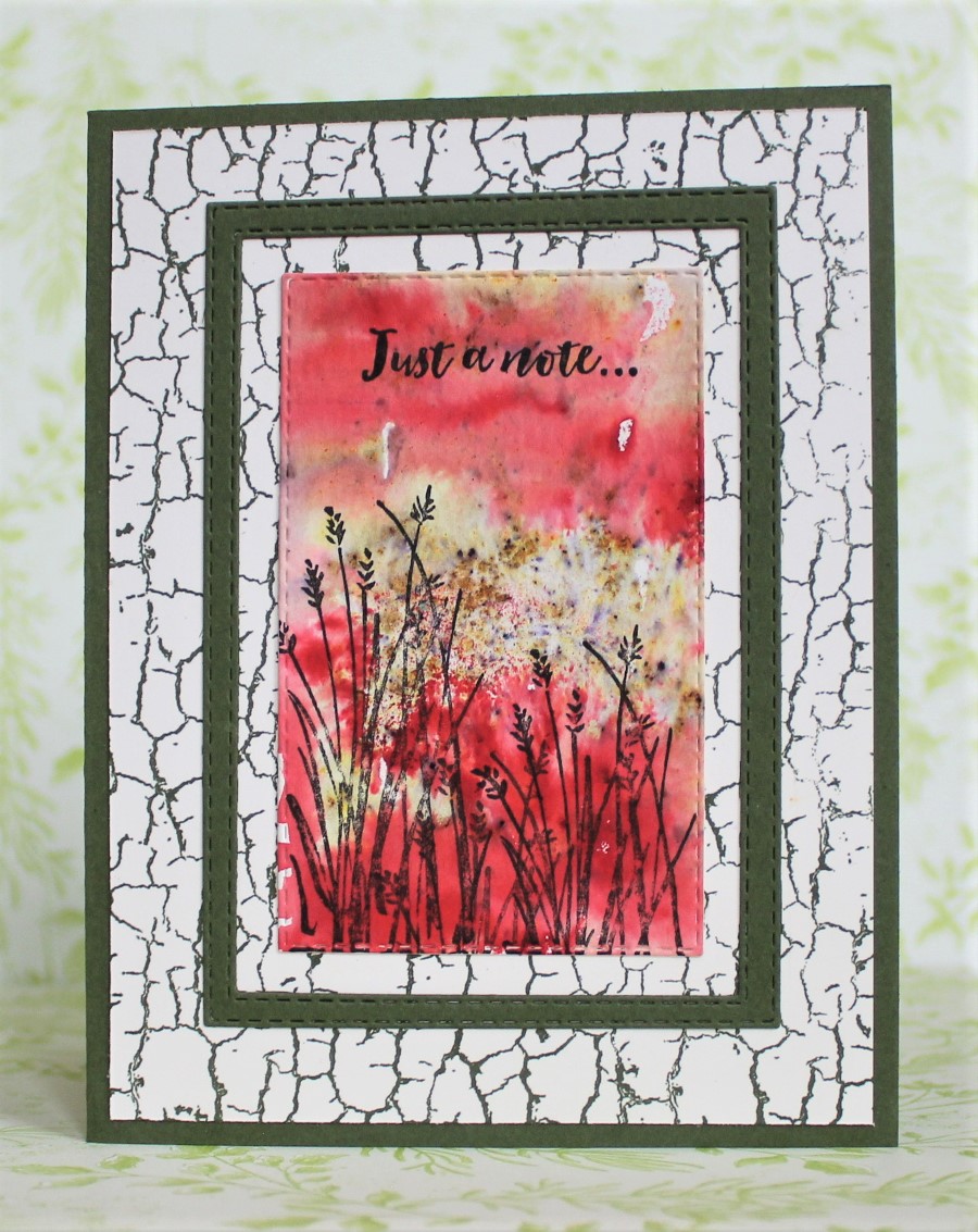 The grasses and the sentiment are both from the SAB stamp set, Home to Roost, stamped with Early Espresso.