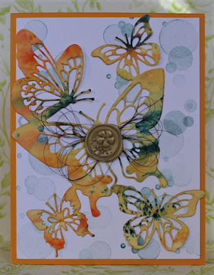 It's a feminine theme this week from Kath. A perfect opportunity to play with my new butterfly dies. This large die is a really quick way to make a WOW card.